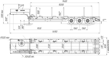 Трал низкорамный четырехосный с раздвижной рабочей площадкой.